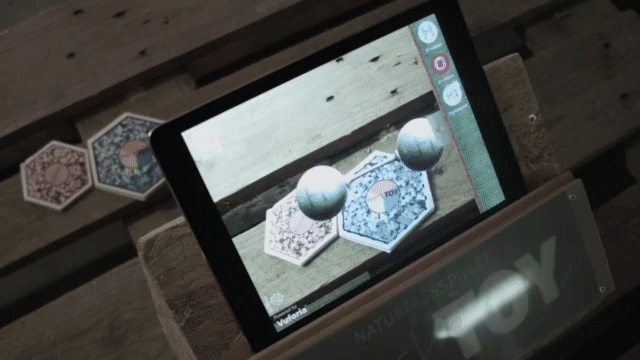 WerkTOY combines a digital app (iPad) with a physical augmented reality tile-set. The game includes exploration, trivia and puzzle elements, multiplayer role playing elements, common goals and cooperative play. The game mechanics and core loops have been designed with the goal of maximizing the transfer of learning, and to allow students to unlock information and data in engaging and magical ways.